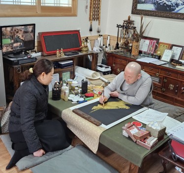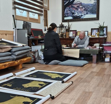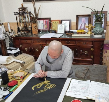 만녕스님께서 보살님의 사주에 맞춰 복돼지 그림 그리는모습
